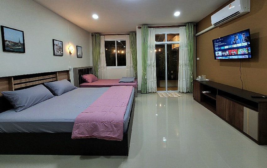 สามารถเข้าพักแบบเหมาหลังสำหรับ 12 ท่าน หรือพักแบบแยกห้องส่วนตัวสำหรับ 6ท่าน หรือ 3ท่าน โดยเลือกได้ตามต้องการ มีแอร์ เครื่องปรับน้ำอุ่นทุกห้อง ฟรี Wifi และพื้นที่ห้องส่วนกลาง มินิบาร์ สระน้ำเด็ก อุปกรณ์ปิ้งย่าง เตรียมไว้สามารถใช้ร่วมกันได้ พร้อมบริการเครื่องดื่ม